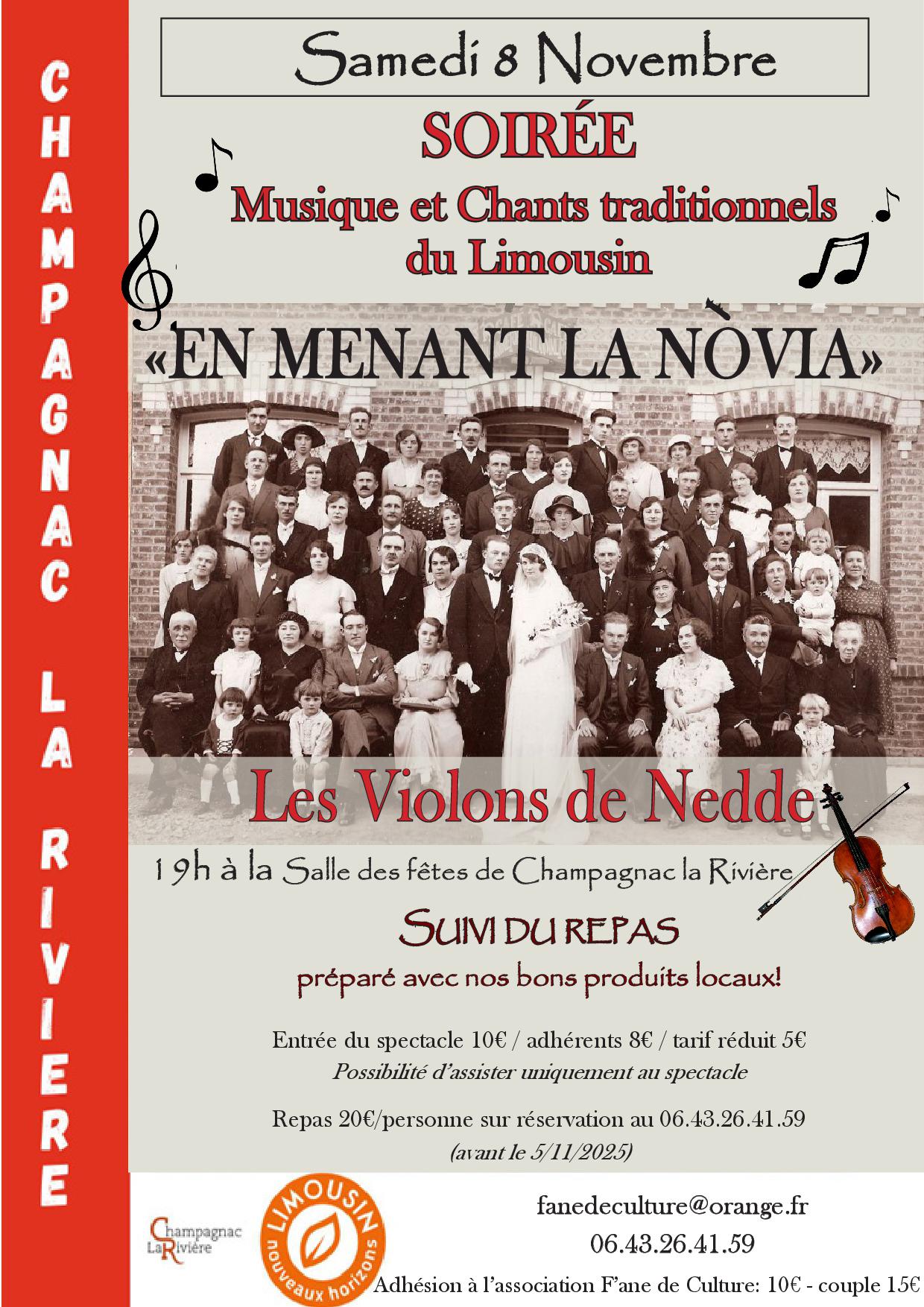 Soirée musique et chants traditionnels du Limousin à Champagnac-la-Rivière